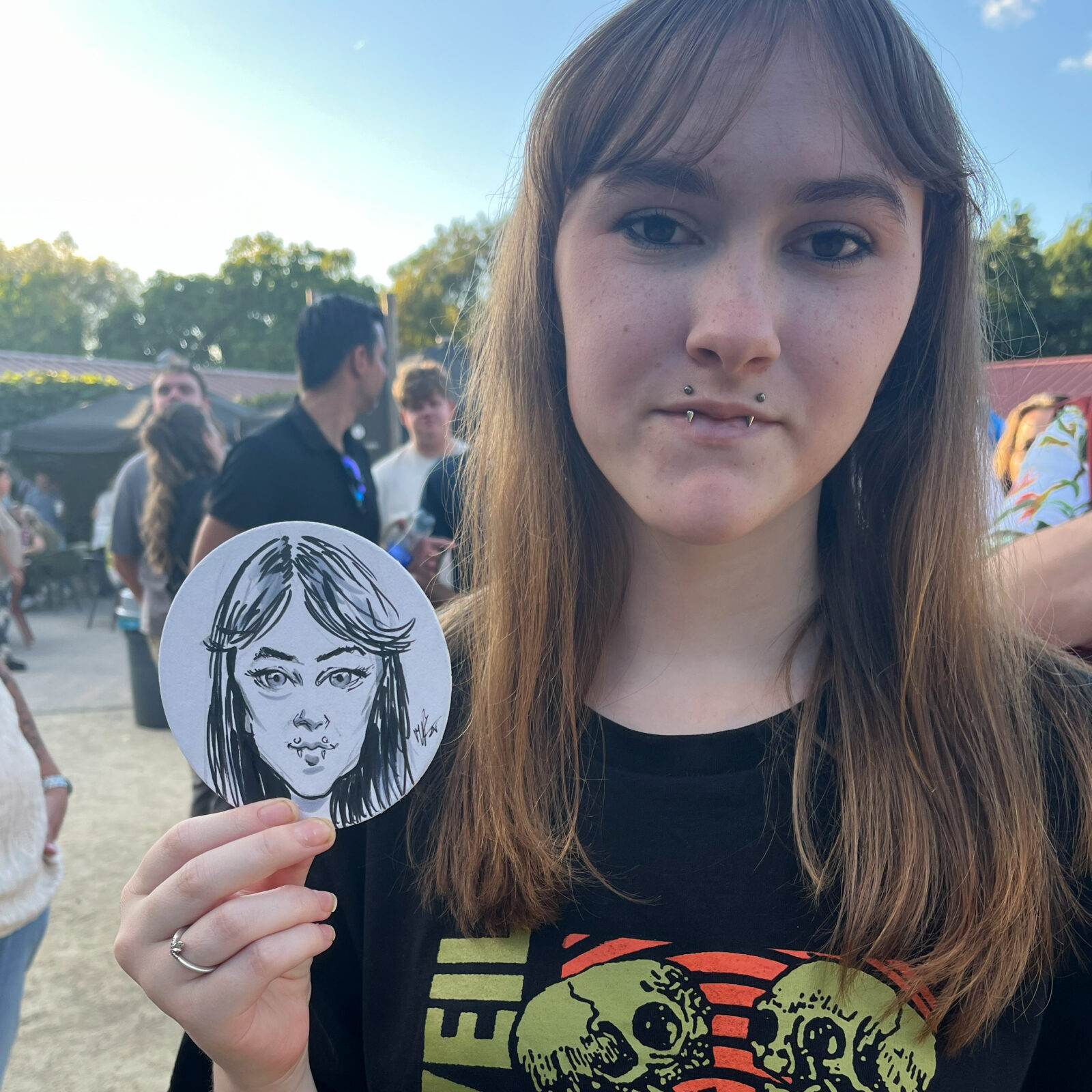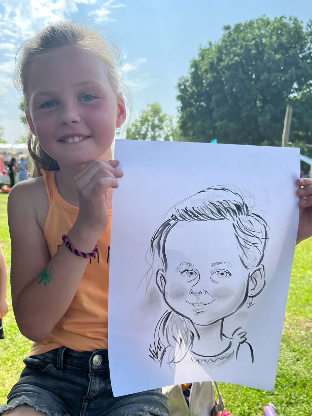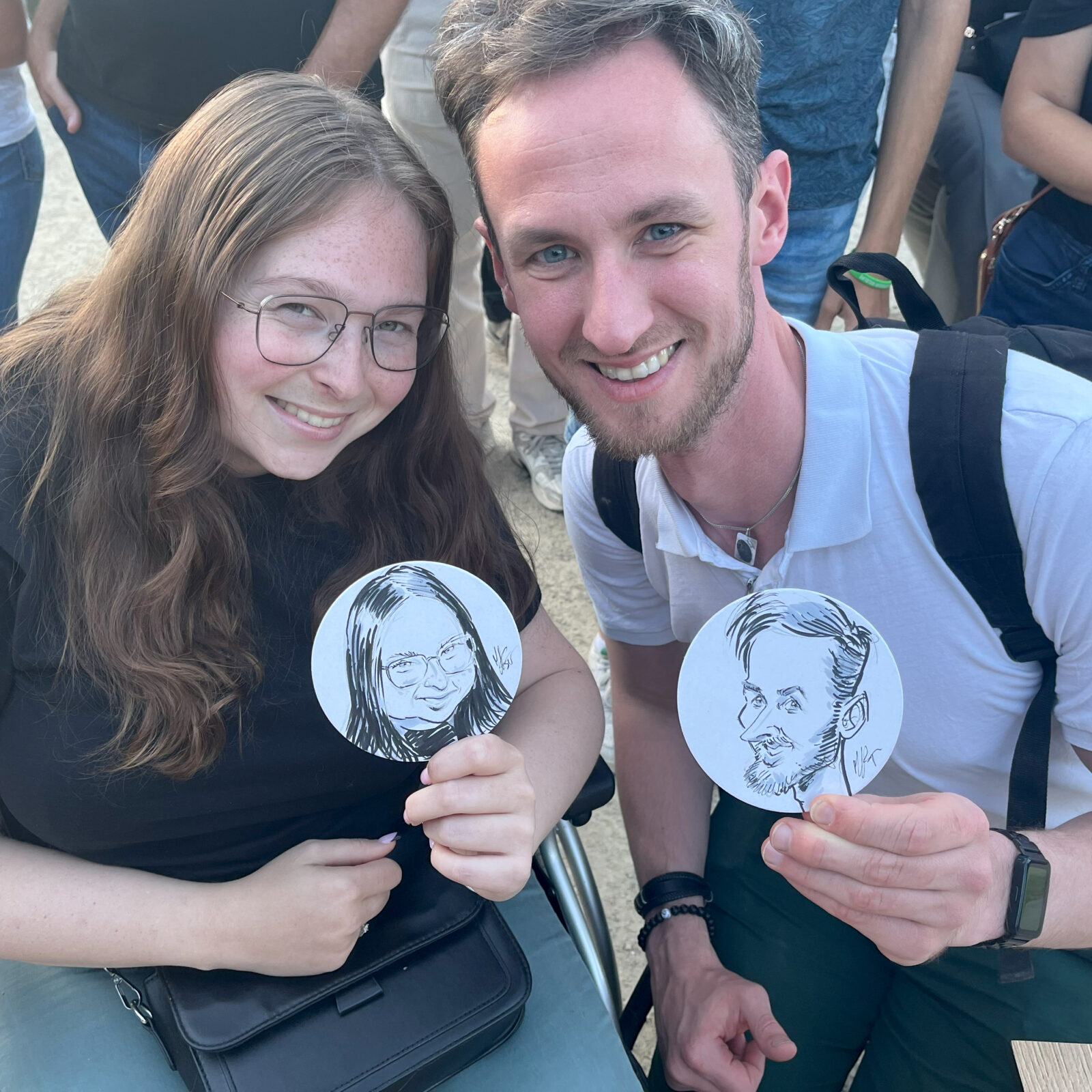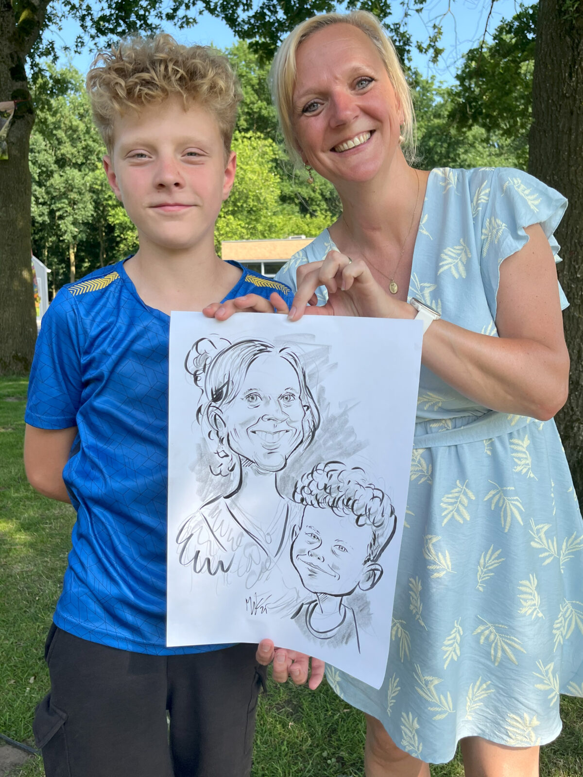 Een karikatuur live op locatie. Binnen 10 minuten worden de aanwezigen vastgelegd, “snel” maar een goede gelijkenis van de geportretteerde is een belangrijke voorwaarde.